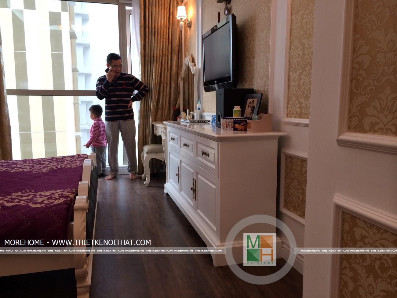 Với phong cách thiết kế vô cùng độc đáo sẽ giúp cho gia đình anh Dũng như đang bước vào một lâu đài với các họa tiết tinh tế thể hiện nên sự sang trọng và quý phái. Lối trang trí giản dị đã tạo nên một không gian thanh thoát, rộng rãi cho căn phòng.