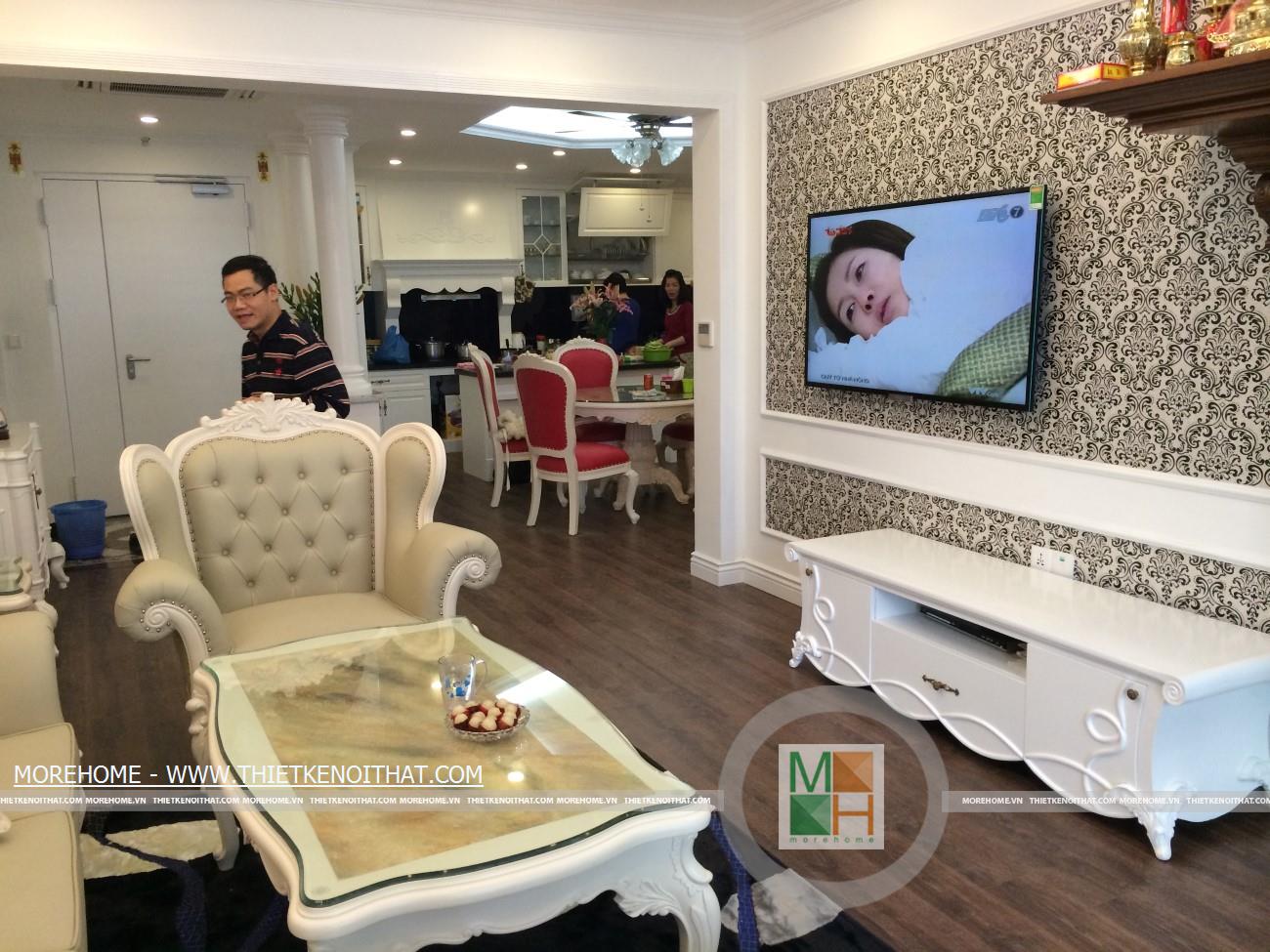 Với phong cách thiết kế nội thất chung cư Mandarin Garden theo hơi hướng tân cổ điển nhưng vẫn toát lên vẻ hiện đại và sang trọng sẽ là một phong cách mới mẻ mà gia đình anh Dũng đã lựa chọn cho căn hộ của chính mình. Một căn hộ với đầy đủ tiện nghi với tông màu trắng làm chủ đạo phối kết hợp với giấy dán tường hoa văn độc đáo tạo nên sự thanh thoát, nhẹ nhàng mà tinh tế.
