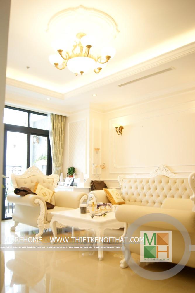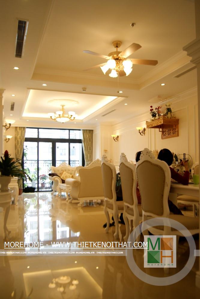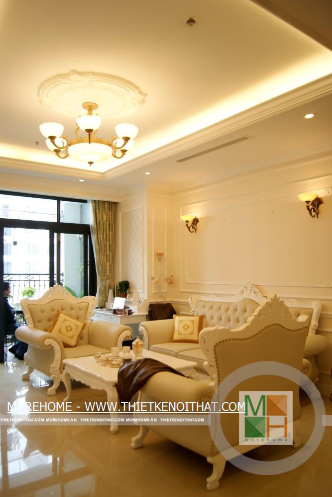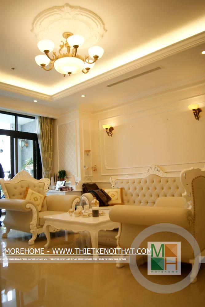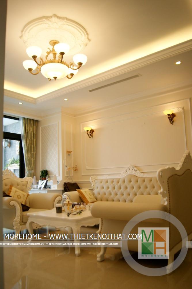 Thi công nội thất chung cư R1 Royal City Theo phong cách Tân cổ điển, theo xu hướng Việt hóa ở bộ ghế sofa trắng tinh tế. Xu hướng thiết kế này phát huy được ưu điểm sang trọng và quý phái của kiến trúc tân cổ điển, nhưng lại phát huy được giá trị dân tộc ở thiết kế nội thất Á đông..jpeg)
