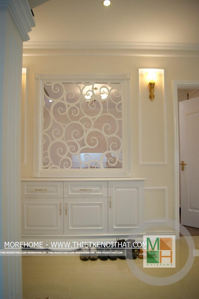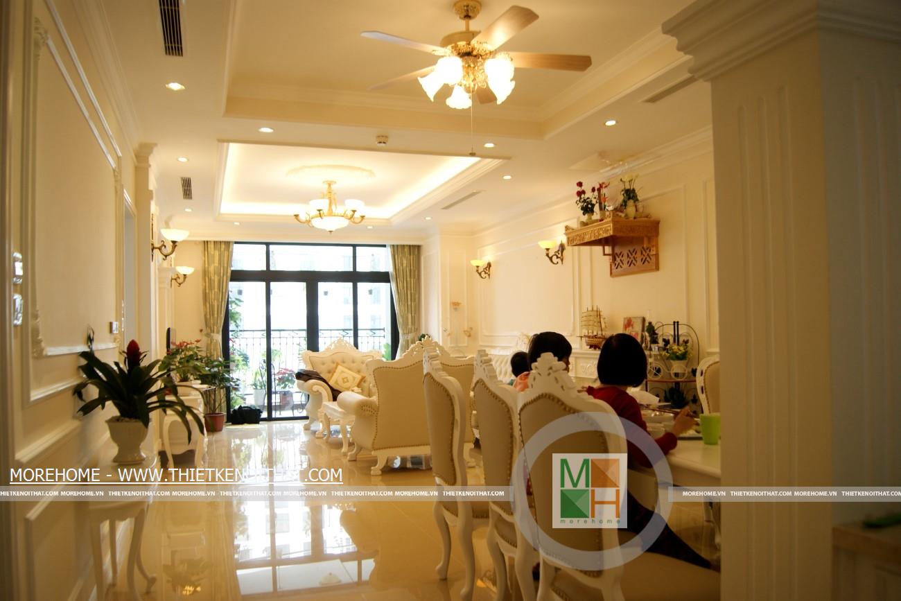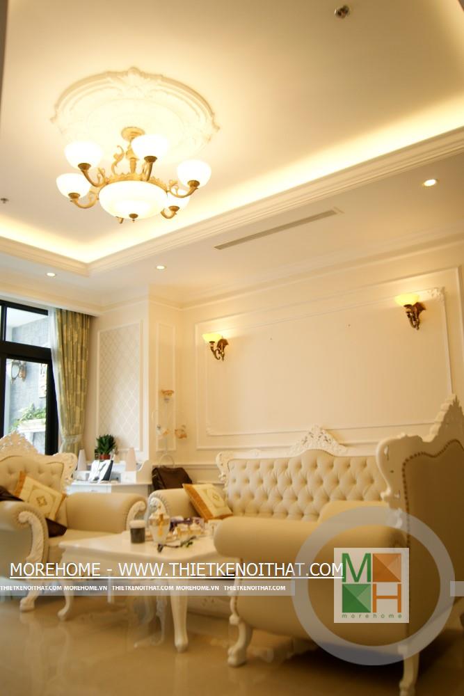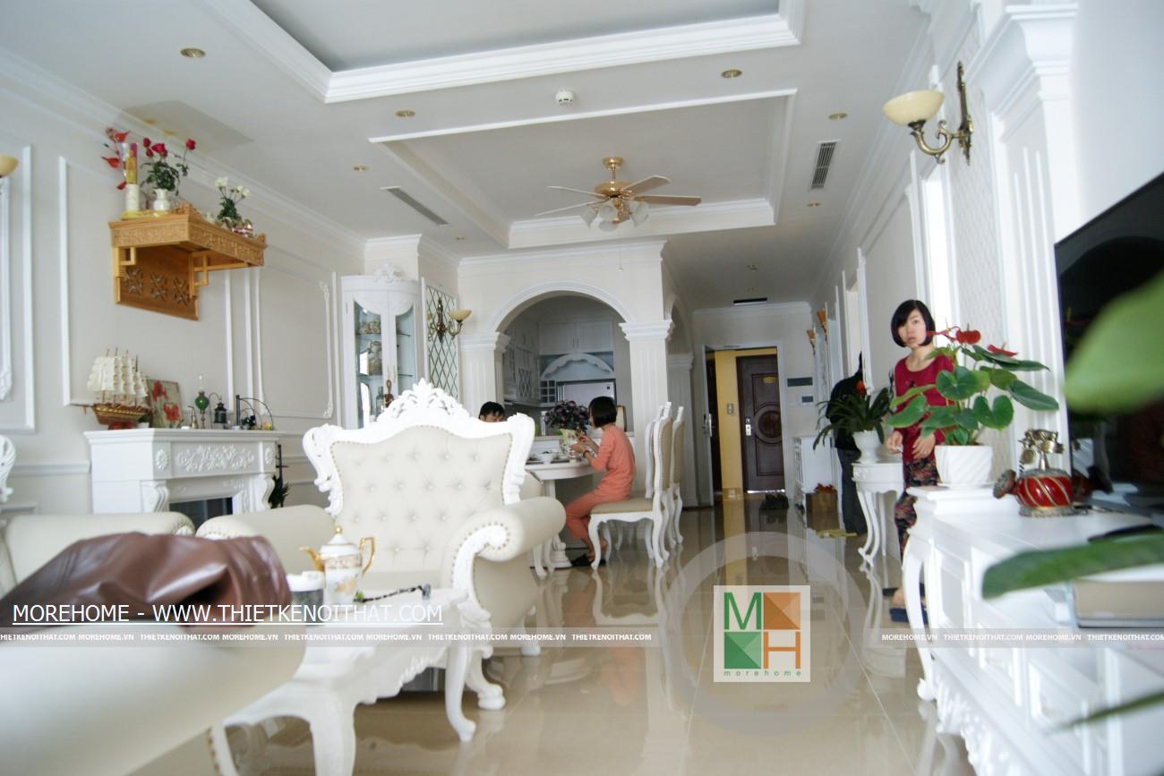 Thi công nội thất chung cư R1 Royal City Theo phong cách Tân cổ điển, theo xu hướng Việt hóa ở bộ ghế sofa trắng tinh tế. Xu hướng thiết kế này phát huy được ưu điểm sang trọng và quý phái của kiến trúc tân cổ điển, nhưng lại phát huy được giá trị dân tộc ở thiết kế nội thất Á đông..jpeg)