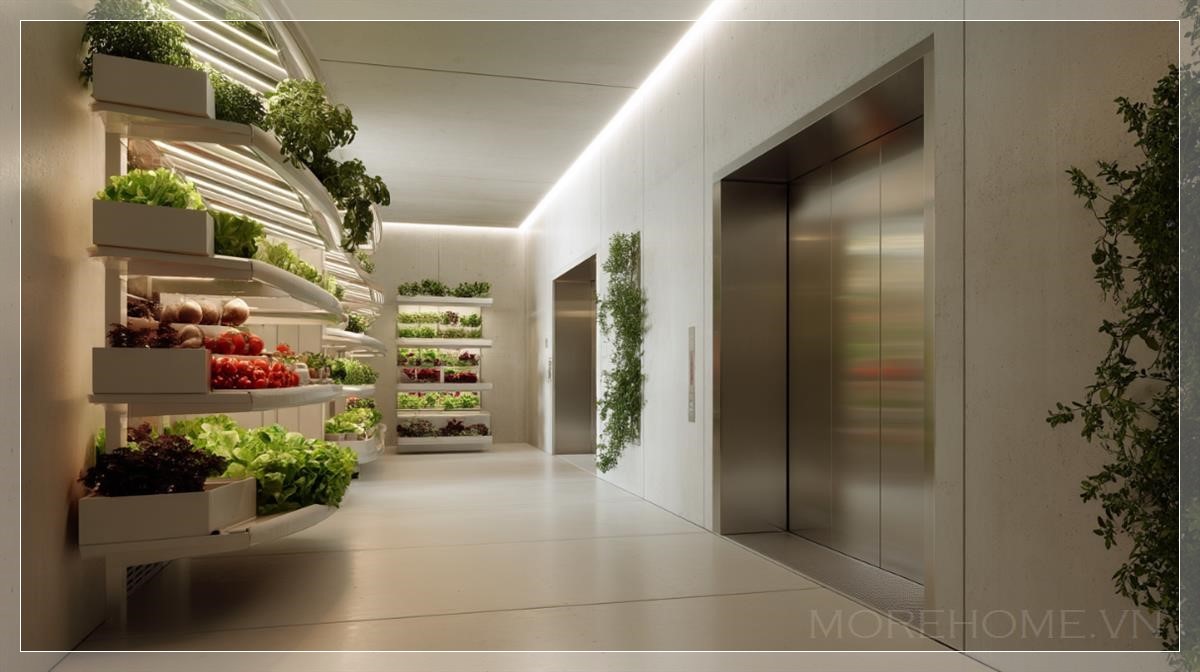 Khác với những thang máy thông thường chỉ đơn giản là công cụ vận chuyển, đây là một không gian mở rộng, nơi sự đổi mới và sáng tạo không ngừng diễn ra. Nó gợi lên hình ảnh của một thế giới tương lai, nơi chúng ta không chỉ tìm kiếm sự tiện ích mà còn là những giải pháp bền vững, trong đó mỗi chi tiết, dù nhỏ nhất, đều có thể trở thành một phần của một hệ sinh thái lớn hơn. Thang máy này, với những cây trồng xanh tươi bên trong, là một minh chứng rõ ràng cho khả năng kết hợp giữa con người, công nghệ và tự nhiên trong một không gian sống hiện đại.