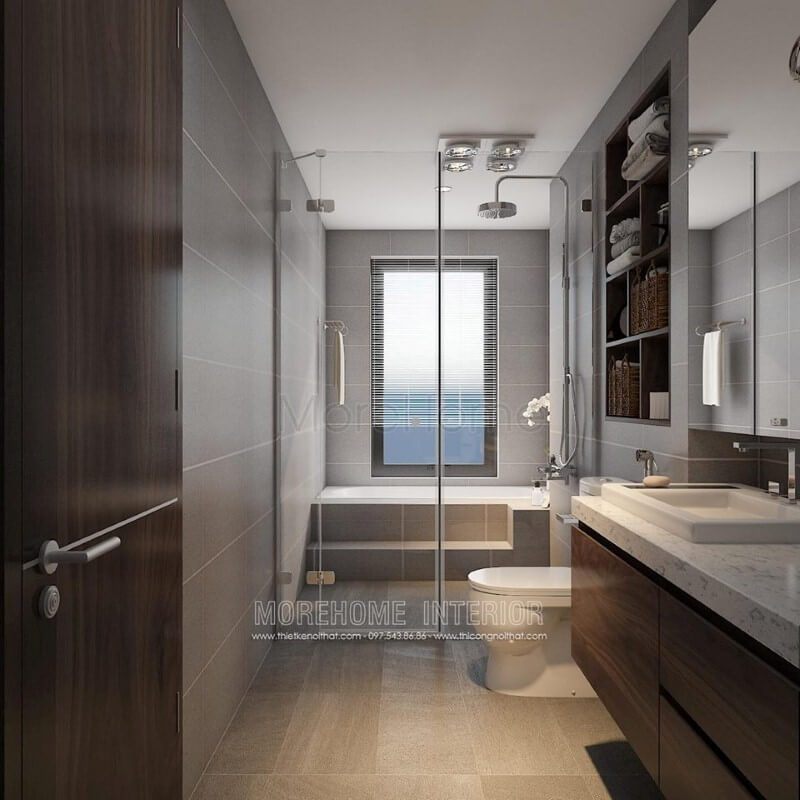 Thiết kế phòng tắm kính có bồn tắm hiện đại, đẹp, sang trọng.