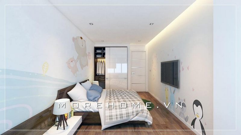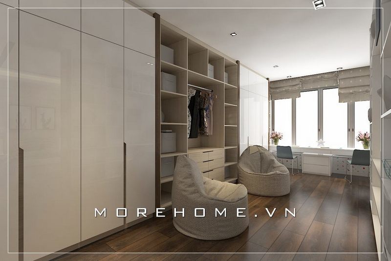 Tủ áo chung cư hiện đại được trang bị chất liệu gỗ công nghiệp, giúp gia chủ có thể tạo ra một không gian sang trọng và nhẹ nhàng hơn.