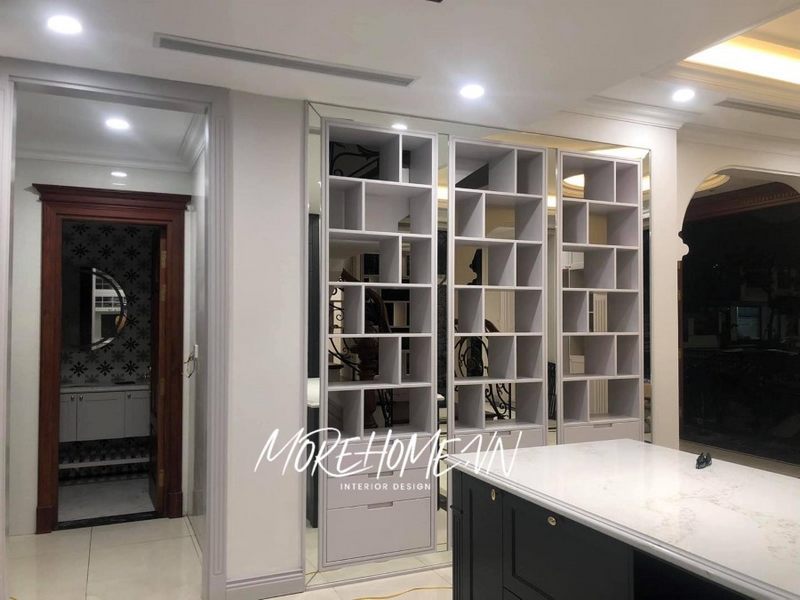 Với thiết kế nhiều ngăn nhỏ bằng vách ngăn gỗ, gia chủ có thể cảm nhận được cảnh quan ngoài phòng mà không cần xây tường truyền thống, cũng có thể bày trí những món đồ nhỏ xinh để làm đẹp cho ngôi nhà của họ.